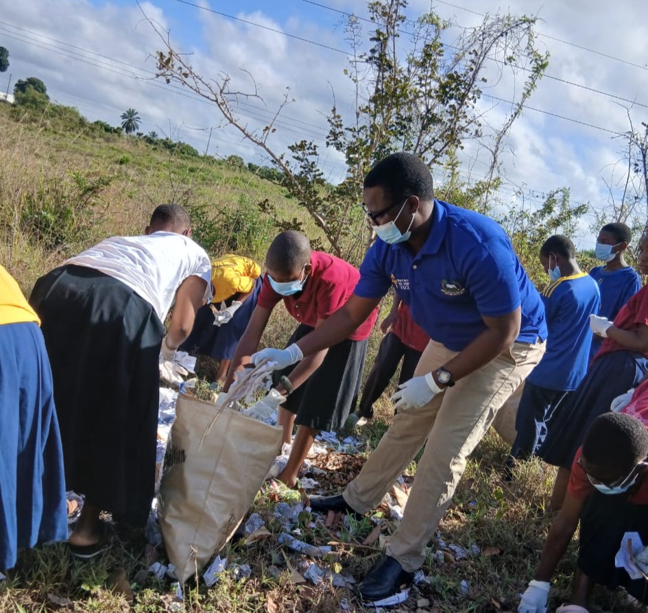 ECOTA with Kafulusu sec students in waste collection during world cleanup day in sept, 2025